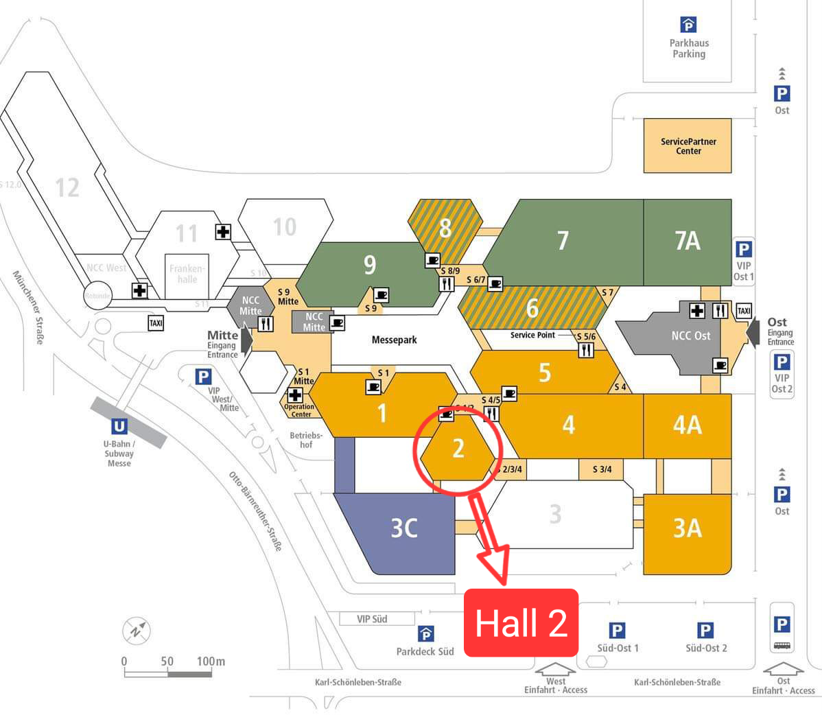 After you have arrived at the location, you will find Hall 2 as shown on map 1.